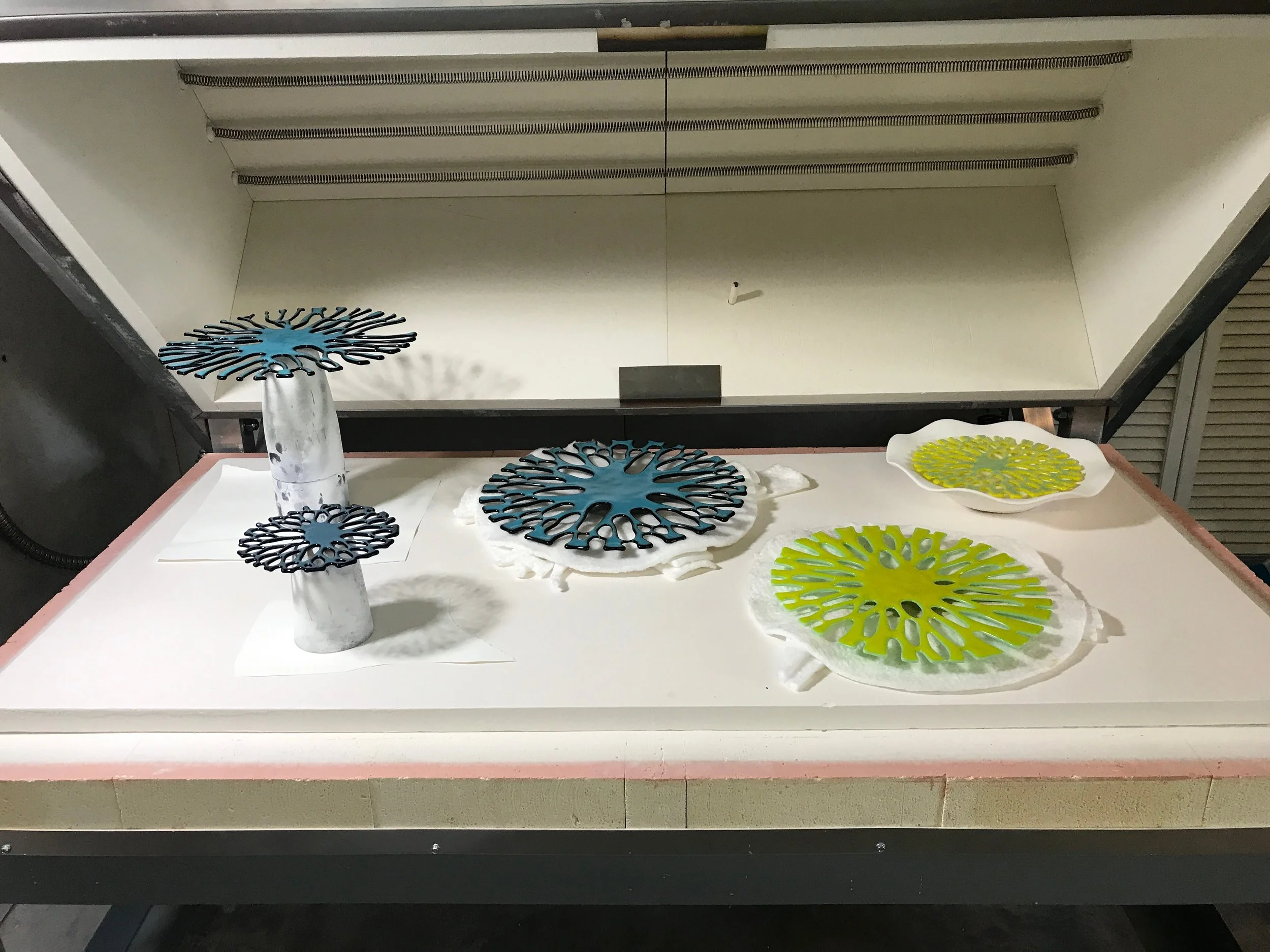 Every piece I create is one of a kind and built to last a lifetime. Kiln-formed glass is fired at temperatures up to 1,460°F over the course of several days.